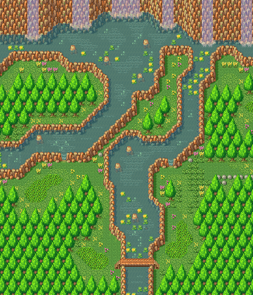 - The game’s first area is not named, but the Fundamental Knowledge Compilation refers to it as the, “Holy Sword Forest.” The game has an unused location in its memory called, “Topaz Falls”, likely a name for the waterfall itself.
