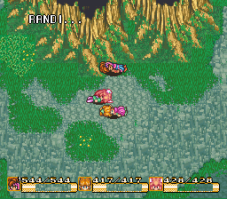 Randi is successful in reaching the Pure Land: a dense, untouched forest that at times seems like it never ends. It has six boss monsters, the most of any sequence. There is evidence of abandoned structures, so perhaps it was inhabited in Ancient times. It looks like a volcano from the sky, but instead of a molten cavern, the base is filled with water with an island on top. The Fundamental Knowledge Compilation reveals that the white dragon fought here is one of the species that was thought extinct, so Randi’s basically offing Flammie’s family.
