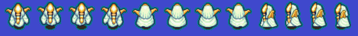 One such that I might be mis-remembering was the idea that this sprite could be a religious/cult disguise for Thanatos in the early game. There is a noticeable lack of story to explain the temple ruins and strange statues within such, or even what drew people to gather in the ruins in the first place. His garb is very similar to papal garments, the white robes with heavy gold accents tends to envoke ideas of holy and powerful person. The face of this character is conspicuously shadowed, also lending itself to perceived anominity of the character.