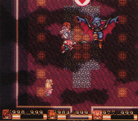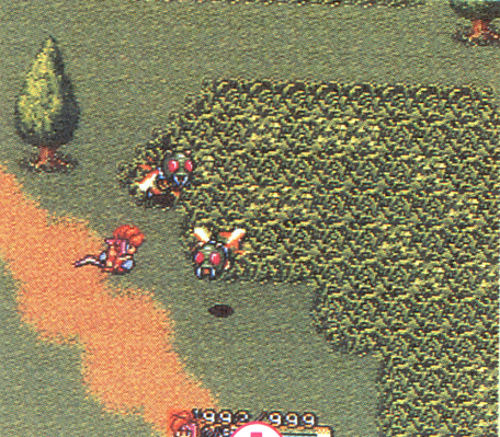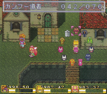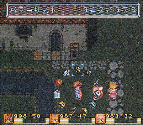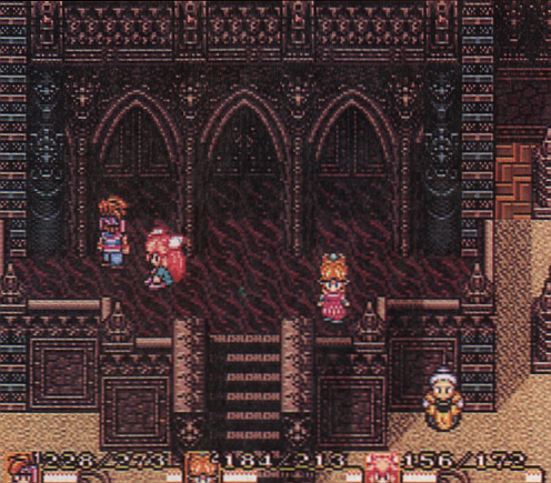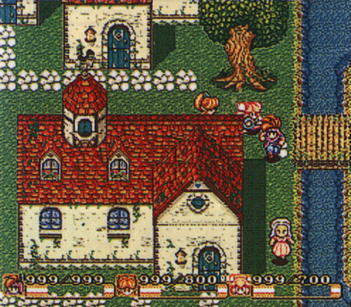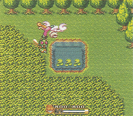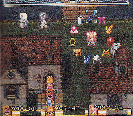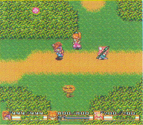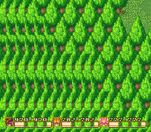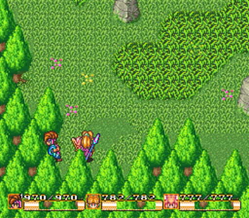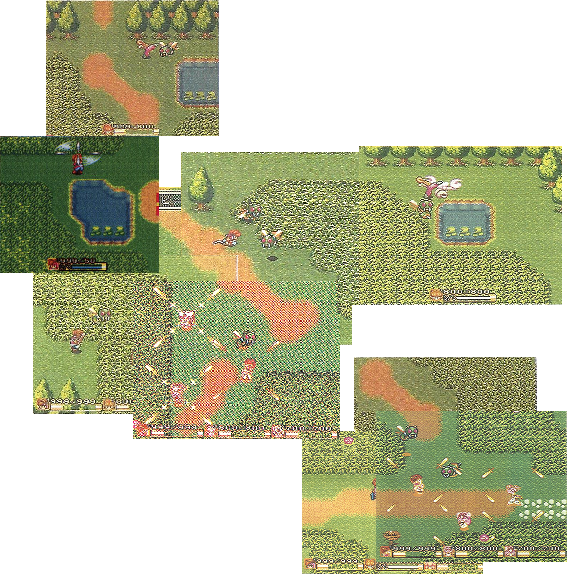 The following shots are likely tests for Purim. There’s a also distant possibility that Secret of Mana was intended to be like Trials of Mana later, where you would start with one of the characters, and meet up with the others along the way. In this speculative case, these shots could be a solo Purim opening, and there are similar shots of solo Popoie in a different, unknown area. In the final game, if you’re not captured by the goblins near Neko’s and meet Purim for the first time in Pandora, she has an unfinished dialogue sequence that may have been adapted from a solo exposition. The characters set out on their own and meet up, but only Randi’s story is depicted in Secret of Mana.
